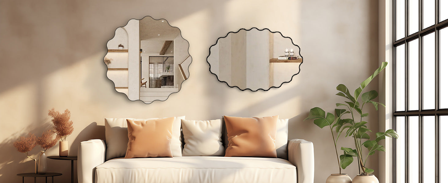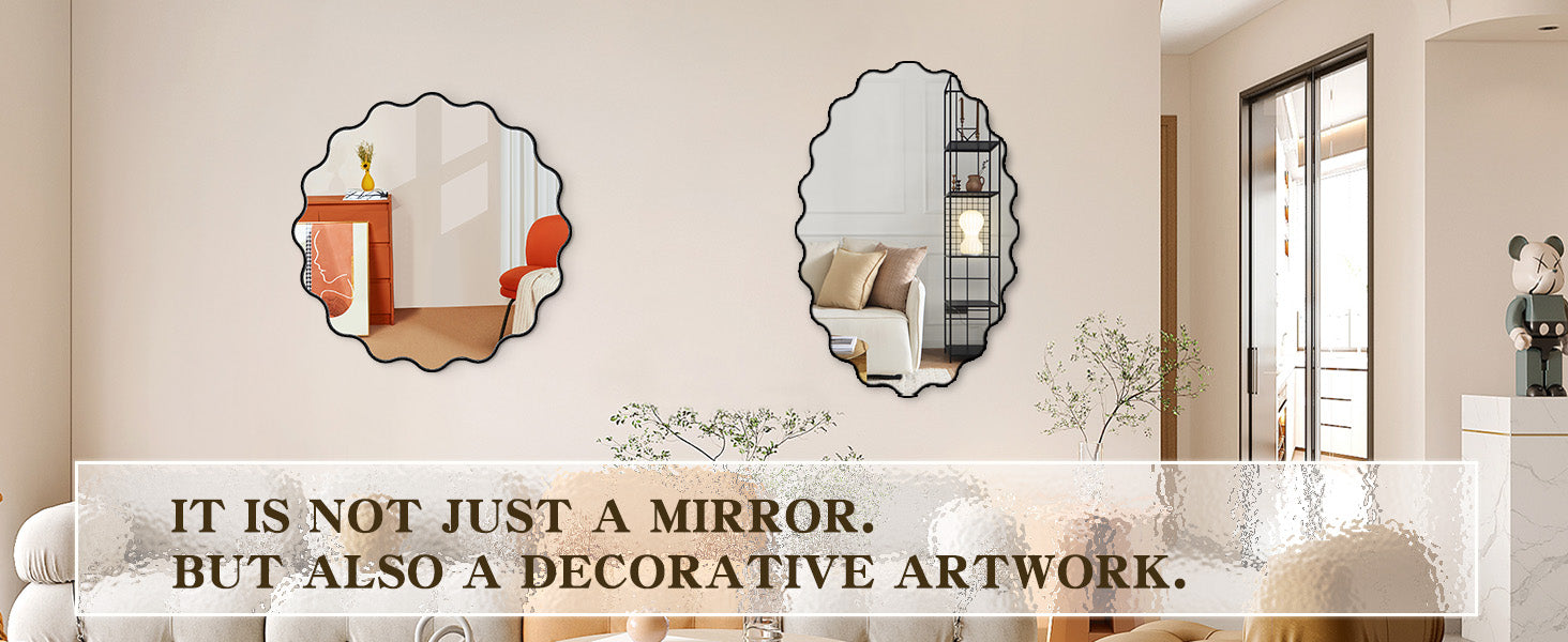- UNIQUE DESIGN: This asymmetrical mirror is an artistic display on its own, which is a beautiful part of any home decorating scheme. This unique shaped mirror gives the illusion of even more light and depth