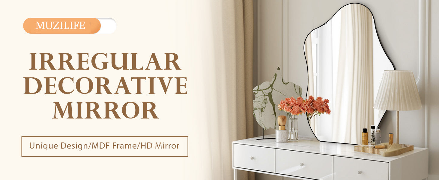 - HIGH-QUALITY MATERIALS: This shaped mirror is made of a 5mm lead-free and copper-free mirror and a 9mm black density board, which could present a clear reflection. The size of this asymmetrical mirror is about 23"x28".