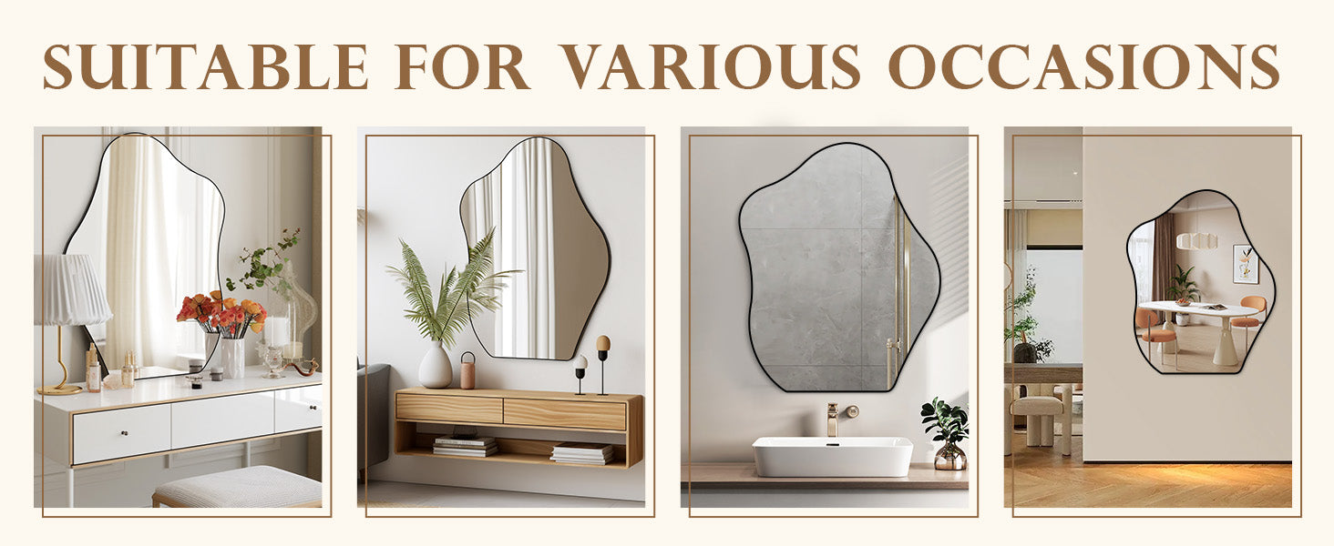 - SATISFACTION GUARANTEE: Each asymmetrical mirror is packaged in professional protective packaging and packed in a thick box to ensure safe arrivals. If you have any questions about our products, please feel free to contact us, we are willing to provide you with thoughtful after-sales service. allows you to easily hang it on your wall.