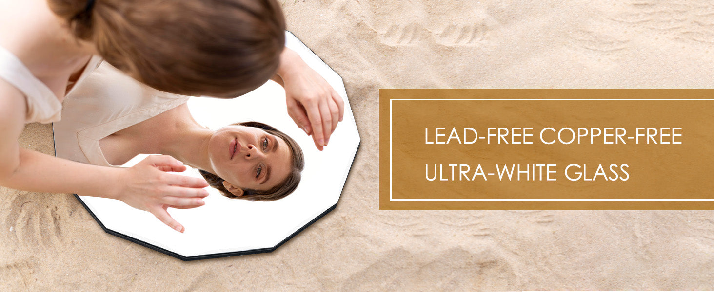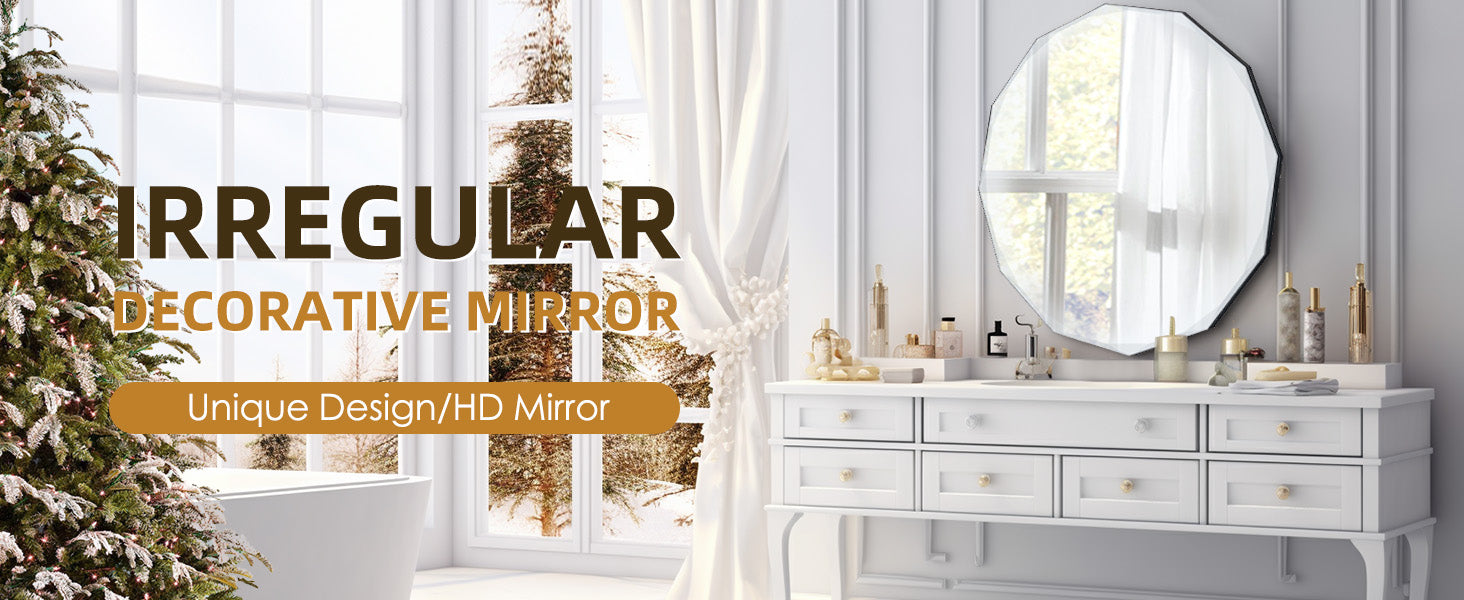 - HIGH-QUALITY MATERIALS: This shaped mirror is made of a 5mm lead-free and copper-free mirror and a 9mm black density board, which could present a clear reflection. The size of this asymmetrical mirror is about24"*24"