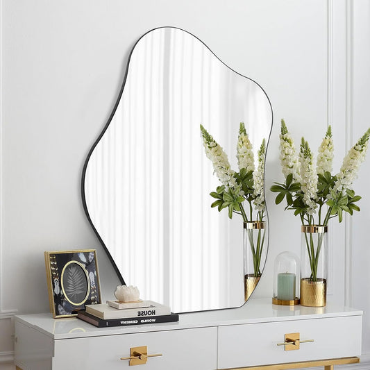 Muzilife Asymmetrical Wall Mounted Mirror, Wavy Mirror, Irregular Shaped for Living Room, Bedroom, Entryway, 23" x33"