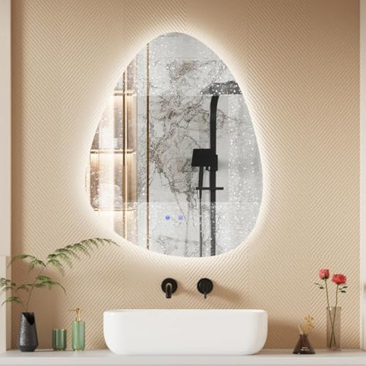 Muzilife 23" x 31" LED Potato Mirror, Irregularly Shaped, Unique Vanity Mirror, Frameless Wall Mirror for Bathroom, Living Room, Bedroom, Entryway